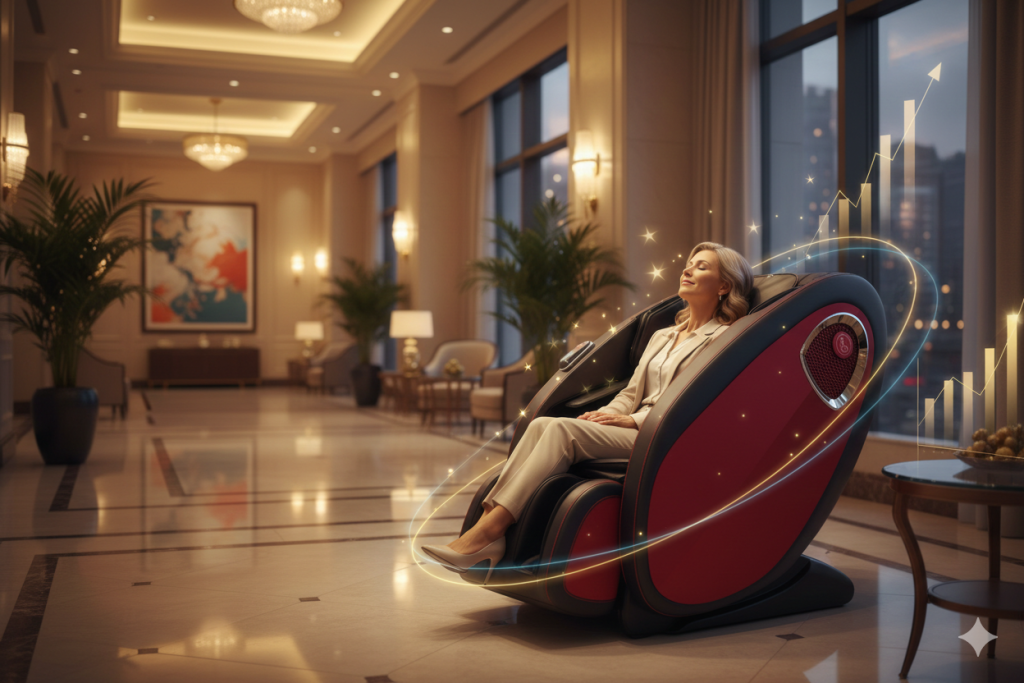 A mid-sized urban hotel in Canada introduced self-service massage chairs by Gagake iSPA Express in its lobby. Within six months, the property experienced: